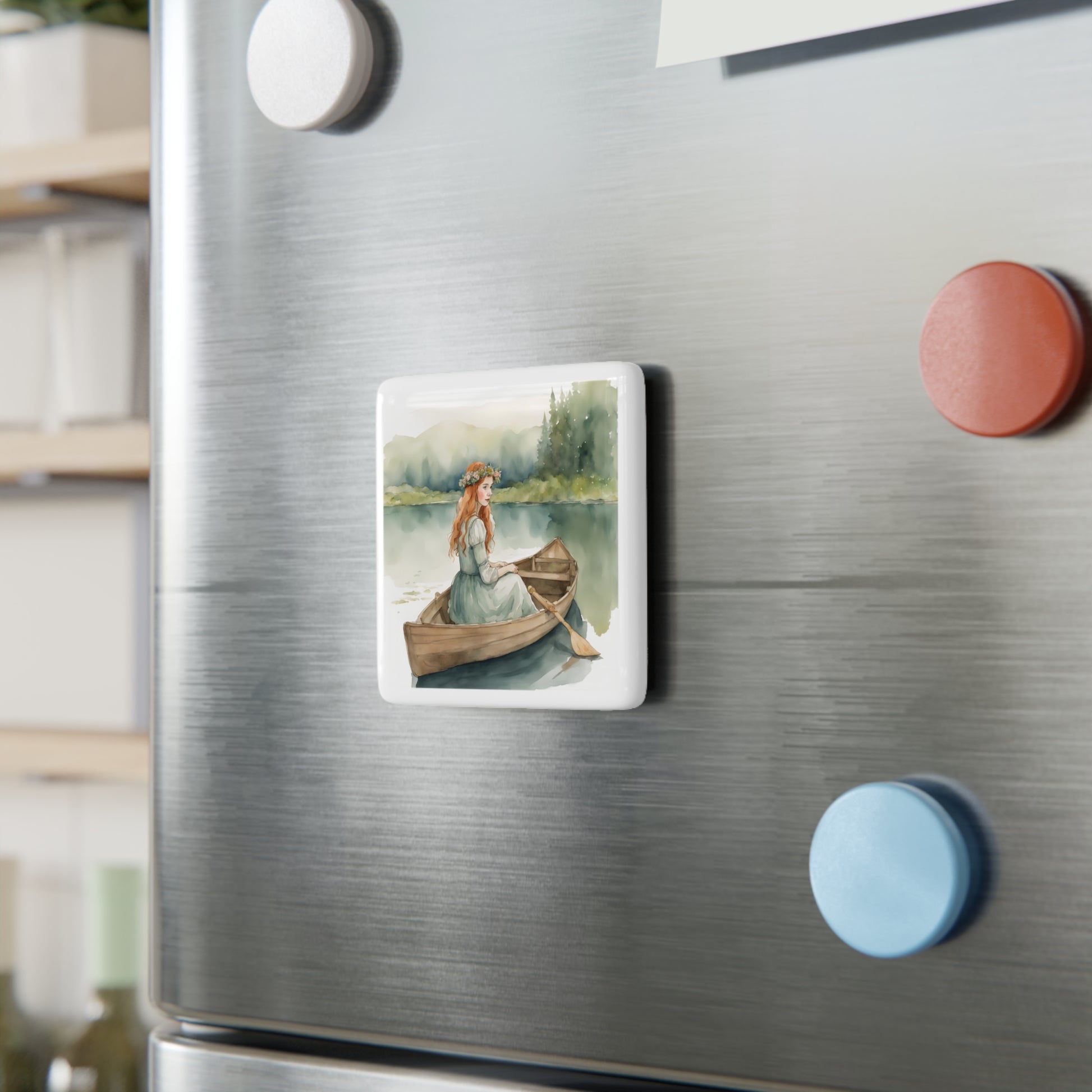 Anne of Green Gables, Lady of Shalott, Lucy Maud Montgomery, Porcelain Magnet, Square, Alfred Lord Tennyson, Gift