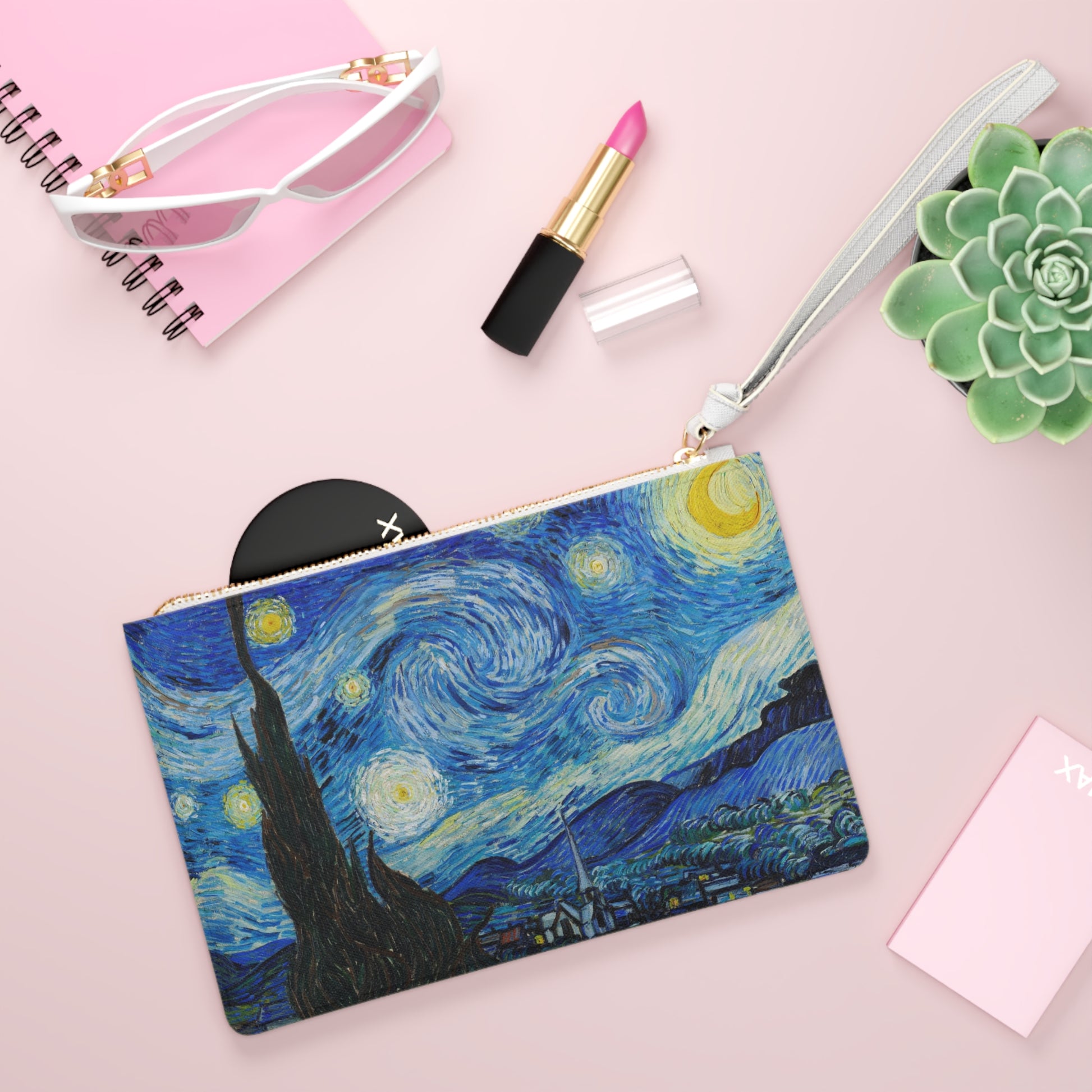 Designed with a loop handle to quickly free your hands, this custom clutch bag is made for the fashionista on the go. It can hold everyday essentials such as a phone, wallet, and keys. It features a zip fastening and a fully lined internal pocket. It is made of vegan leather in the Saffiano pattern finish that was invented by Prada.