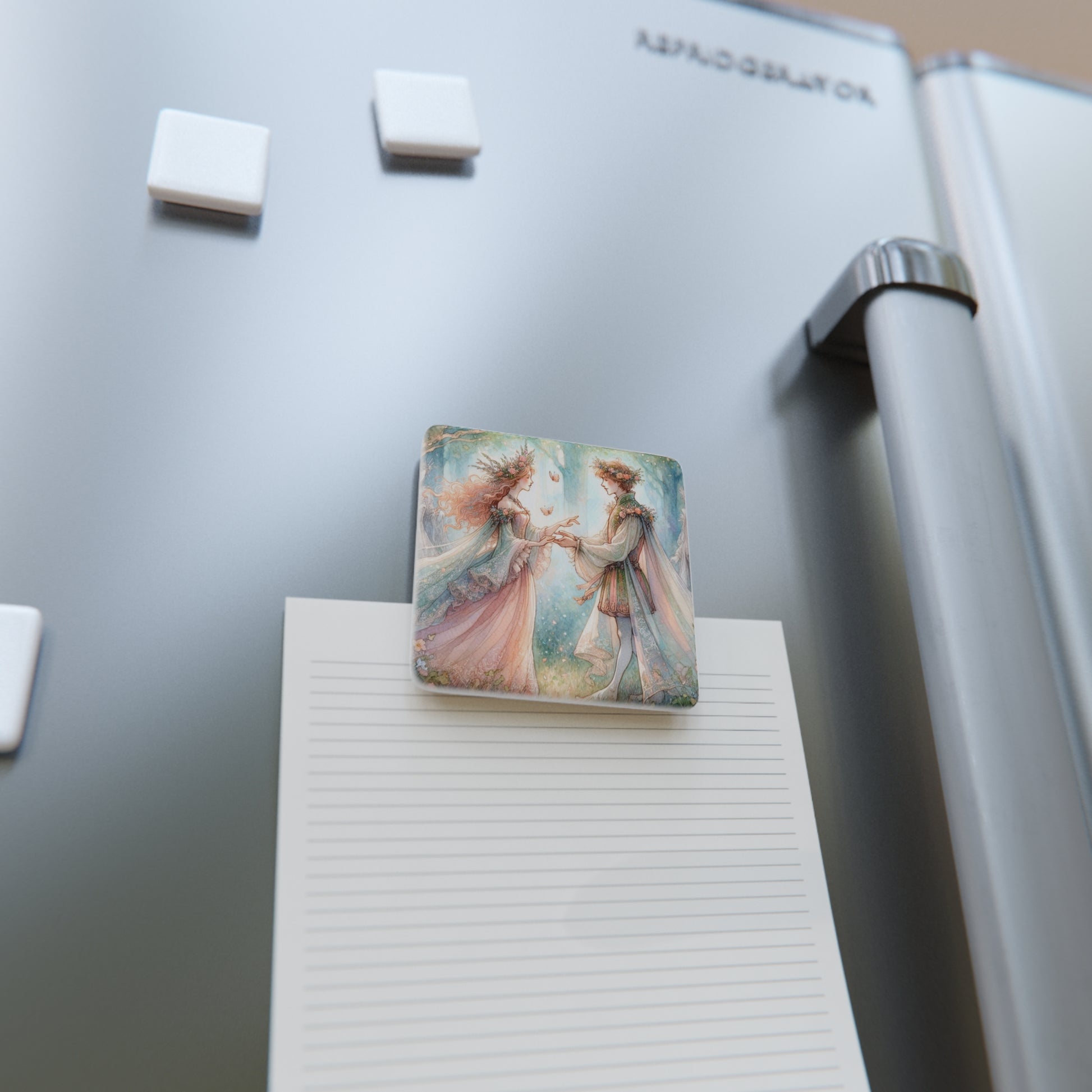 Square Porcelain Magnet, Midsummers Night Dream Fairy Soulmates Shakespeare Gift, Magical Home Decor, Fantasy Art Magnet