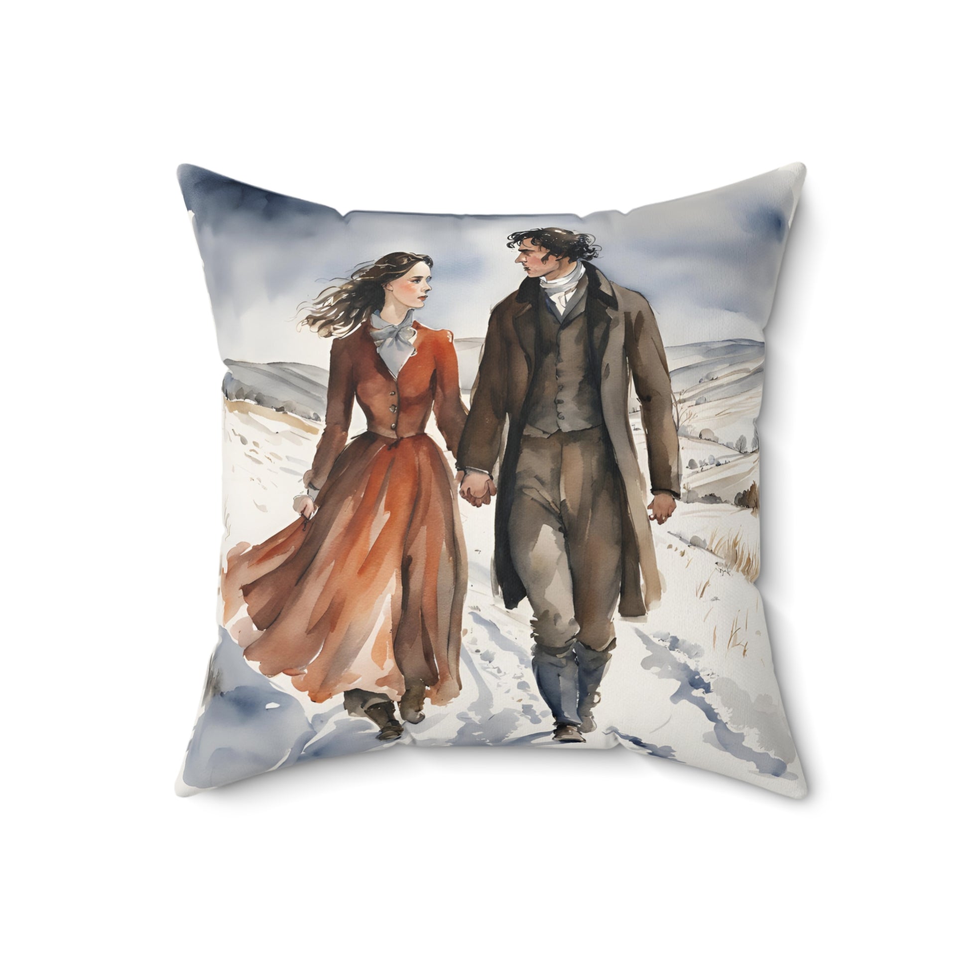 Bring the dark romance of Emily Brontë’s Wuthering Heights into your home with this beautifully designed square pillow. Featuring the haunting figures of Cathy and Heathcliff, this pillow is perfect for lovers of Gothic literature and timeless romance.
